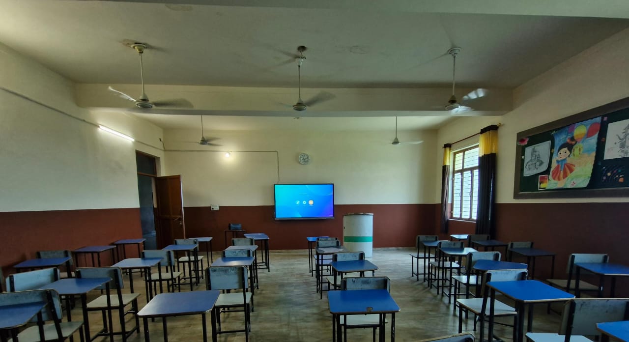 A large amount of child’s time is spent sitting in the classroom. This place is where they will learn the various skills deemed necessary and proper for them to achieve success in the global society. A student’s learning experience is impacted by the classrooms’ design around them. Basic things such as classroom lighting, the colour of the room ,the air quality ,the layout and quality of the furniture and board all affect the student’s learning. Students need an environment that is comfortable and adaptable for their changing needs. Spacious and well ventilated classrooms in our school have a pleasant look with Interactive panels. These adequate number of classrooms, each of approx 500 sq ft with lightly painted walls and informative soft board are the backbone of our physical infrastructure.